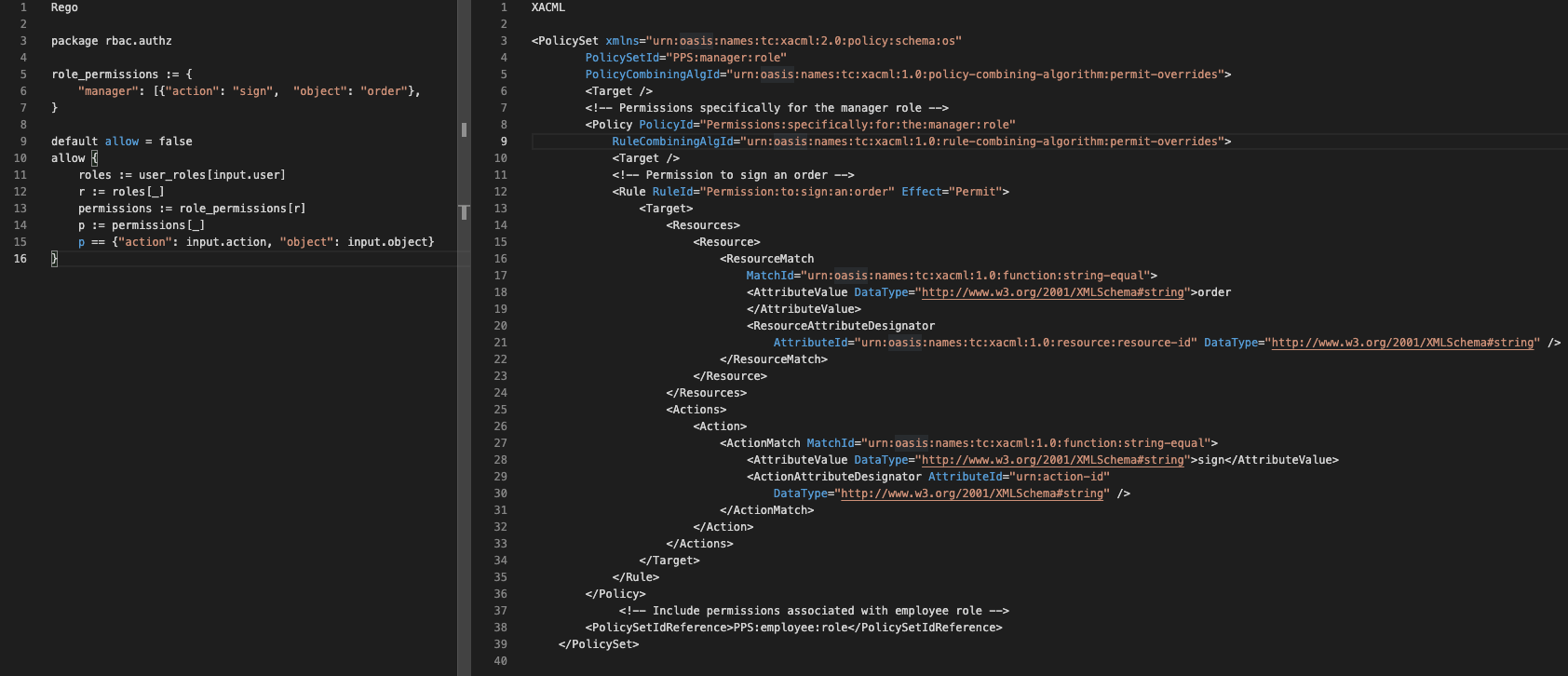 Same policy side to side - Rego and XACML